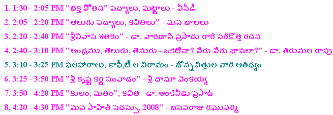 Oct.17 2009, Hosted by Tirumala Rao Tipirneni![]() Some Pictures | |||||||||||||||