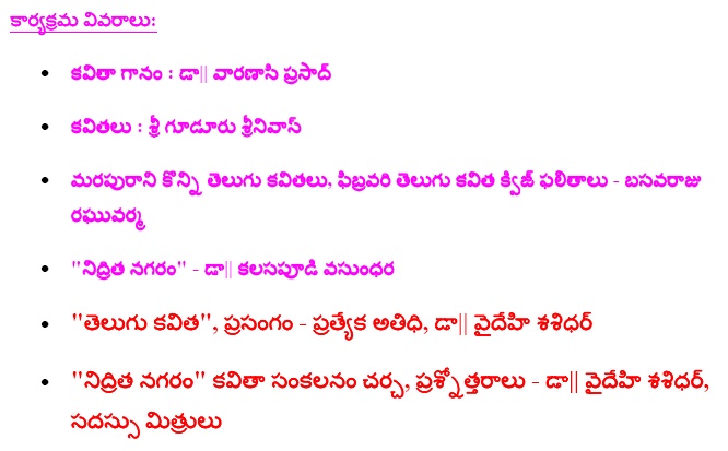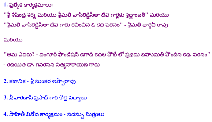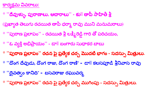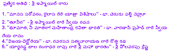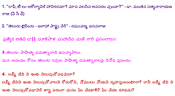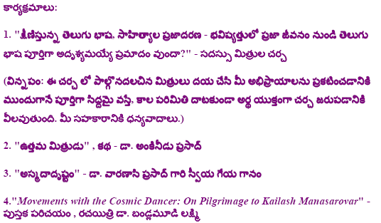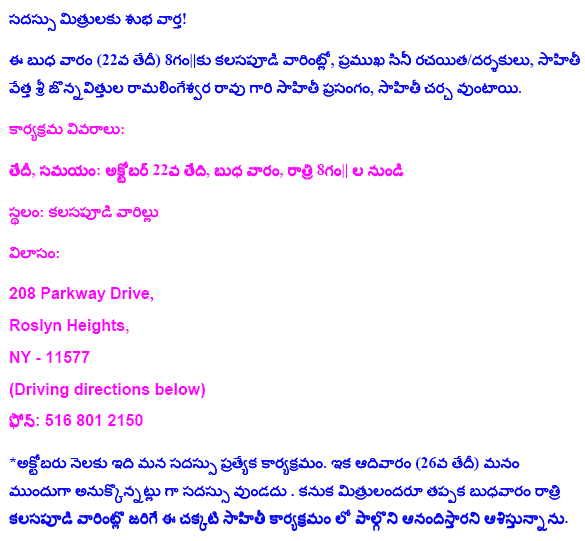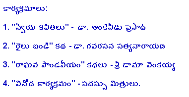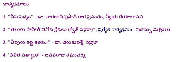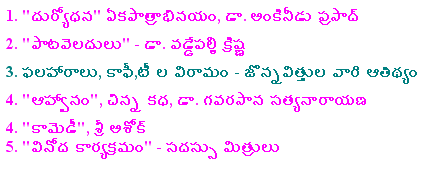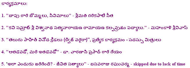 Nov.8 2009, Hosted by Purnachandra Reddy Aramalla![]() Some Pictures, Courtesy Ankineedu Prasad | |||||||||||||||